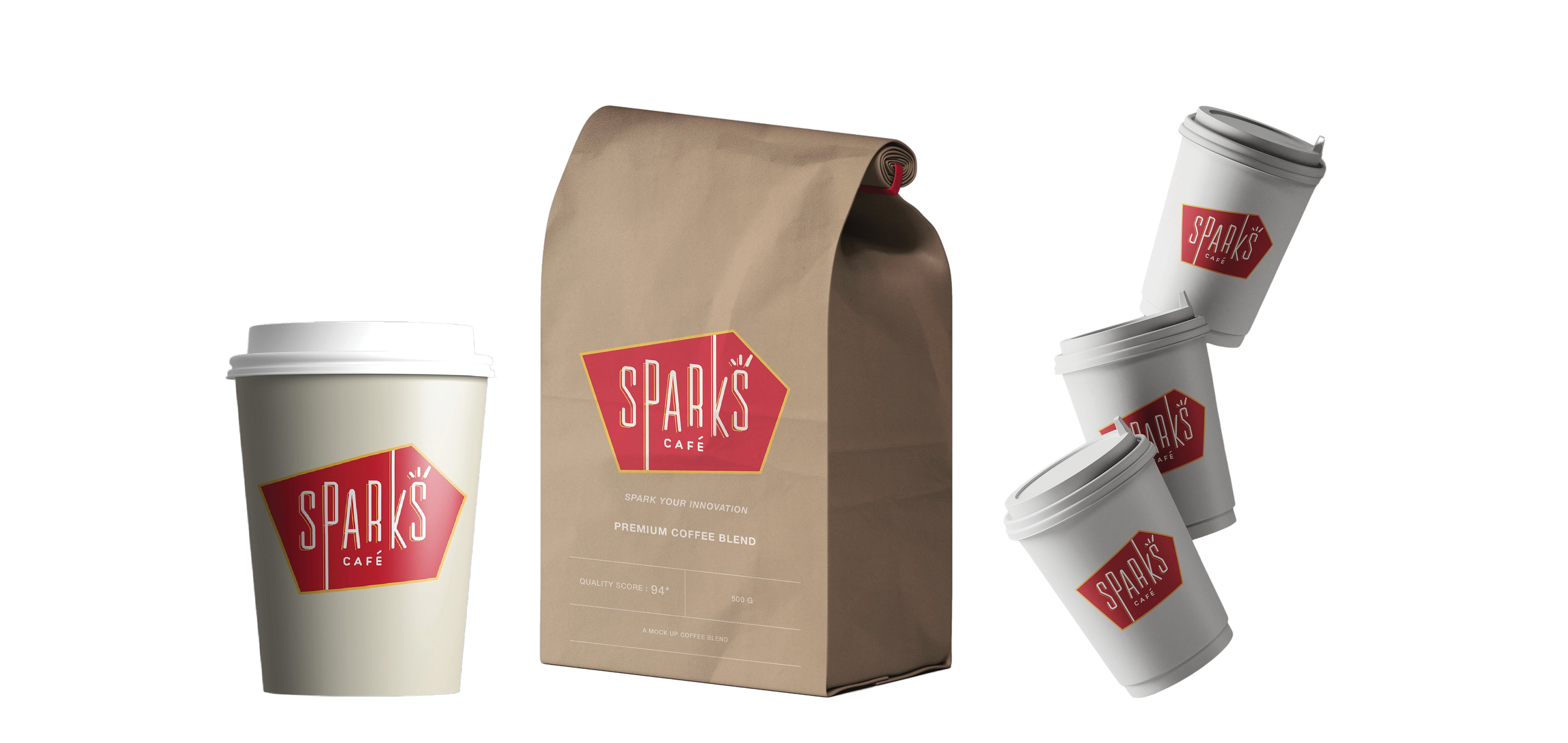 Mock-up Sparks and ISU alum coffee company products to be added onto display shelves and checkout counter